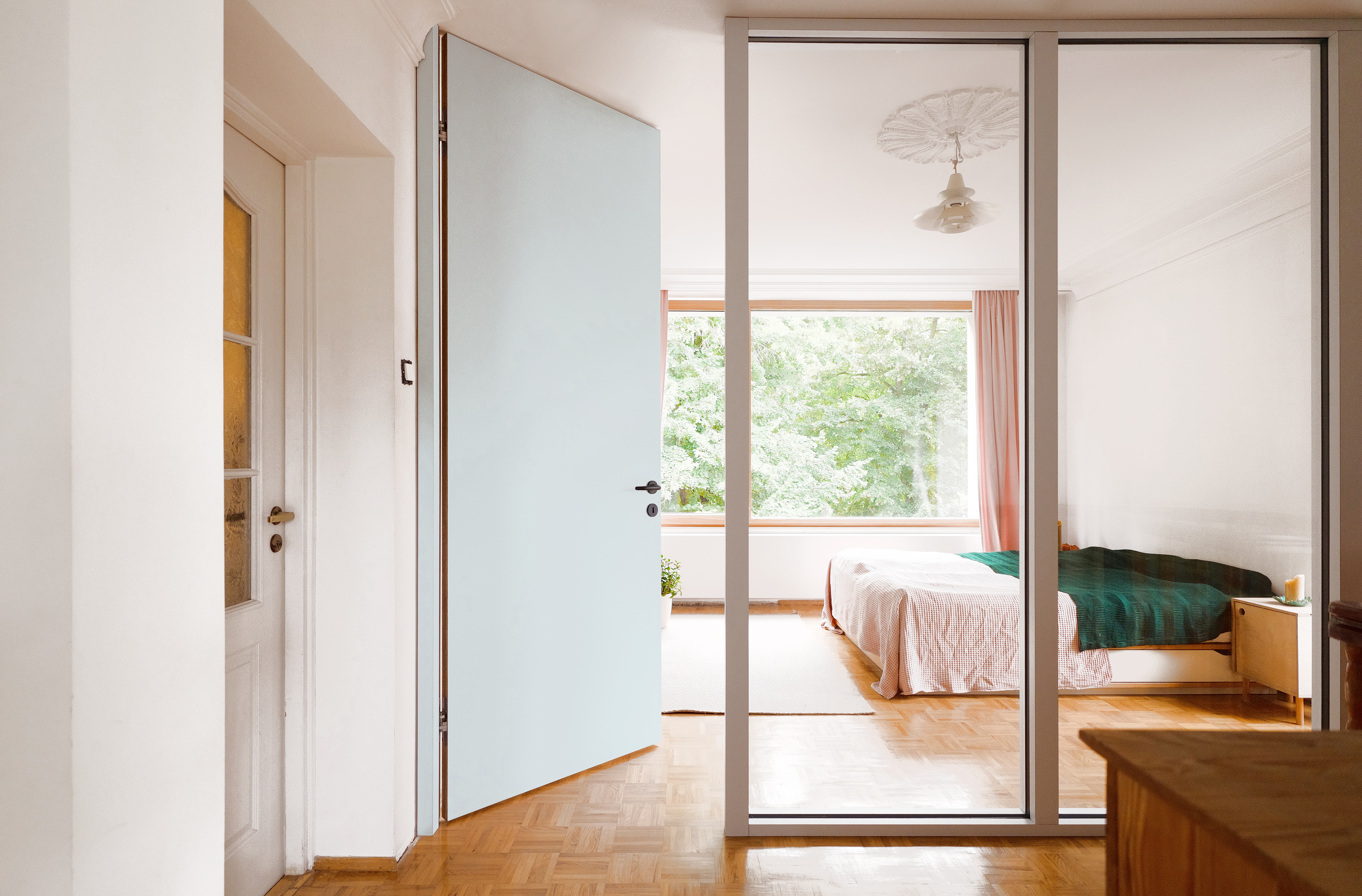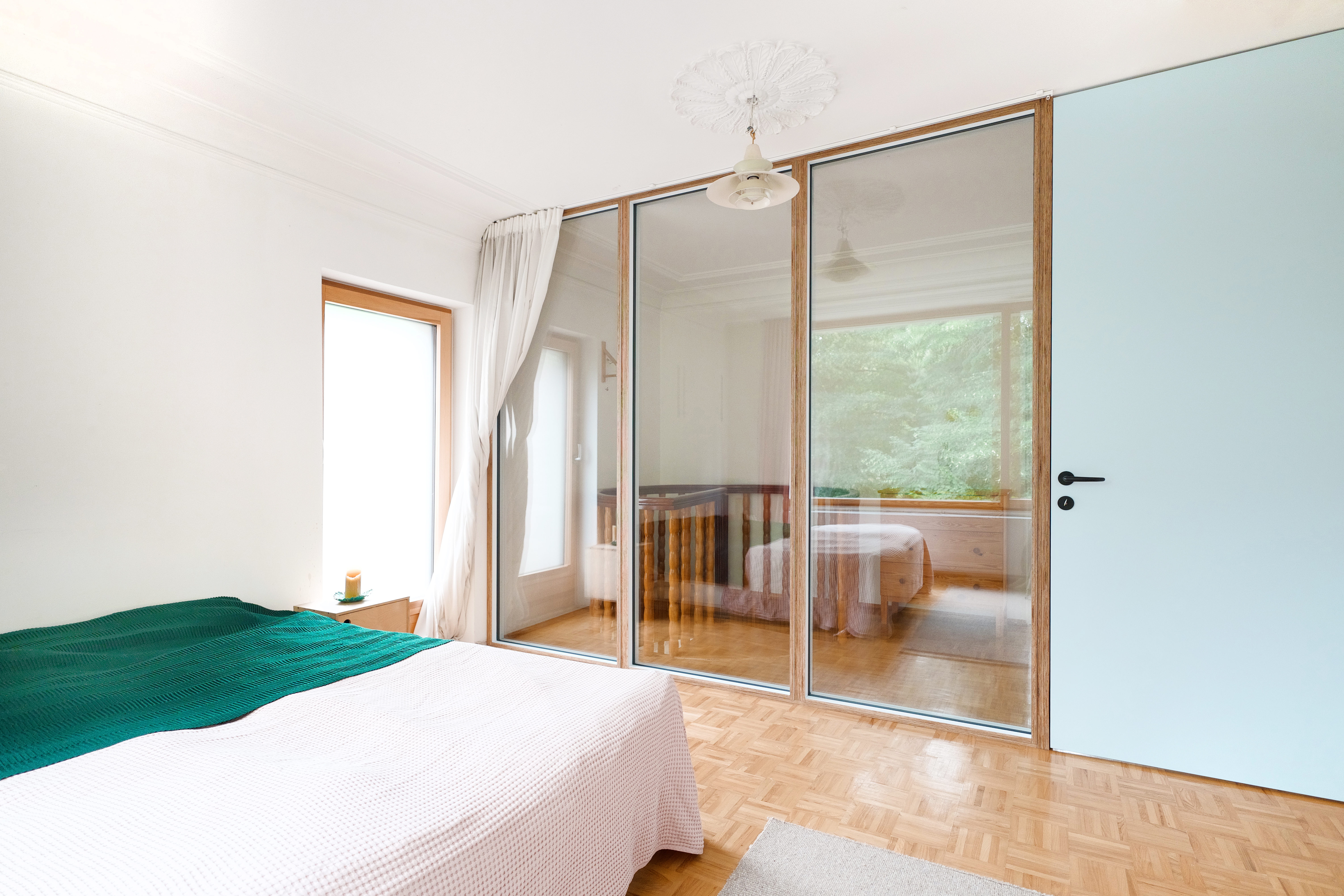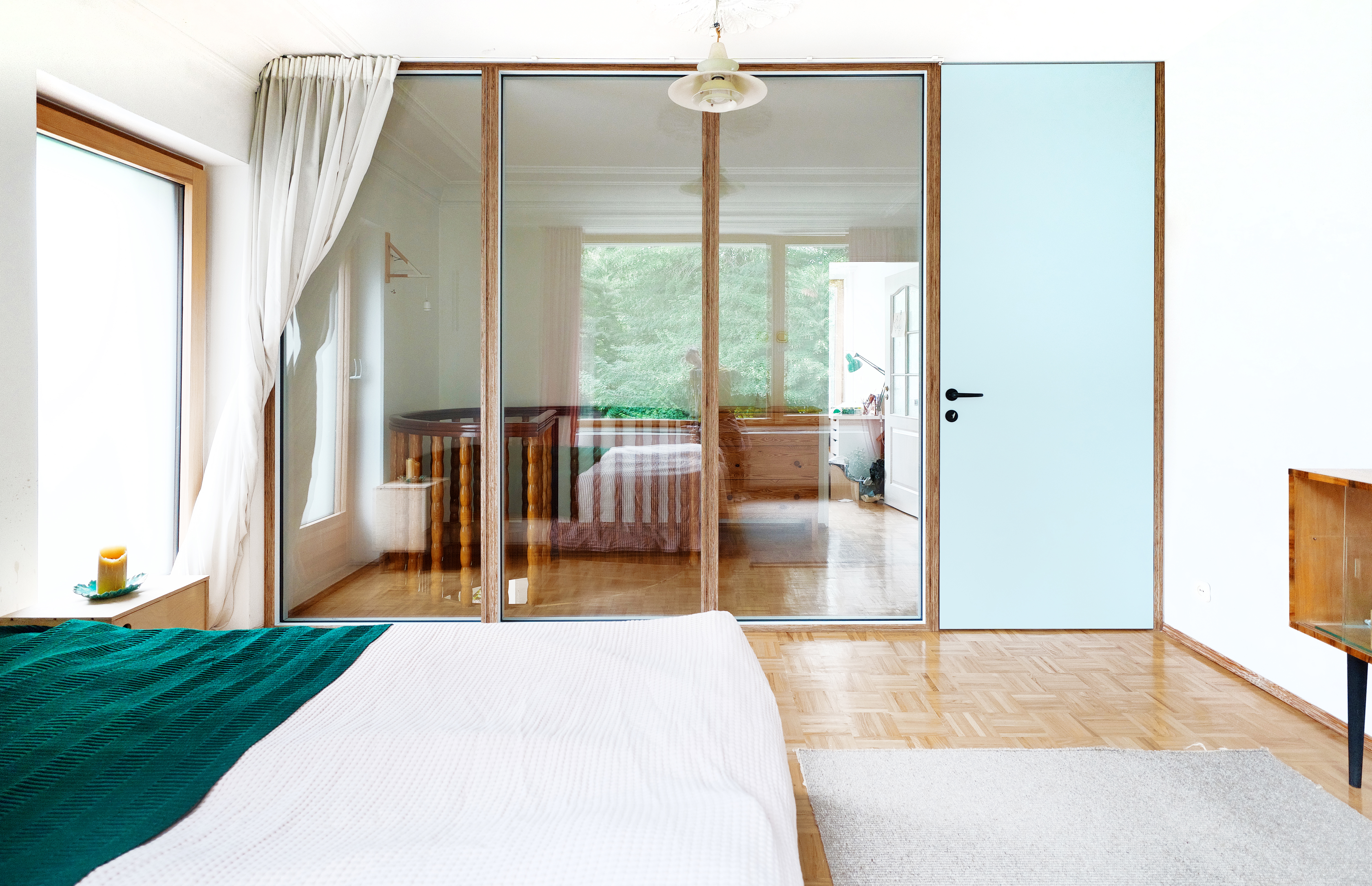 An important part of the project was also the transformation within the private area of the home—an elegant, discreet glazing was designed to separate the bedroom from the staircase, bringing a sense of openness and allowing more light to enter the space.