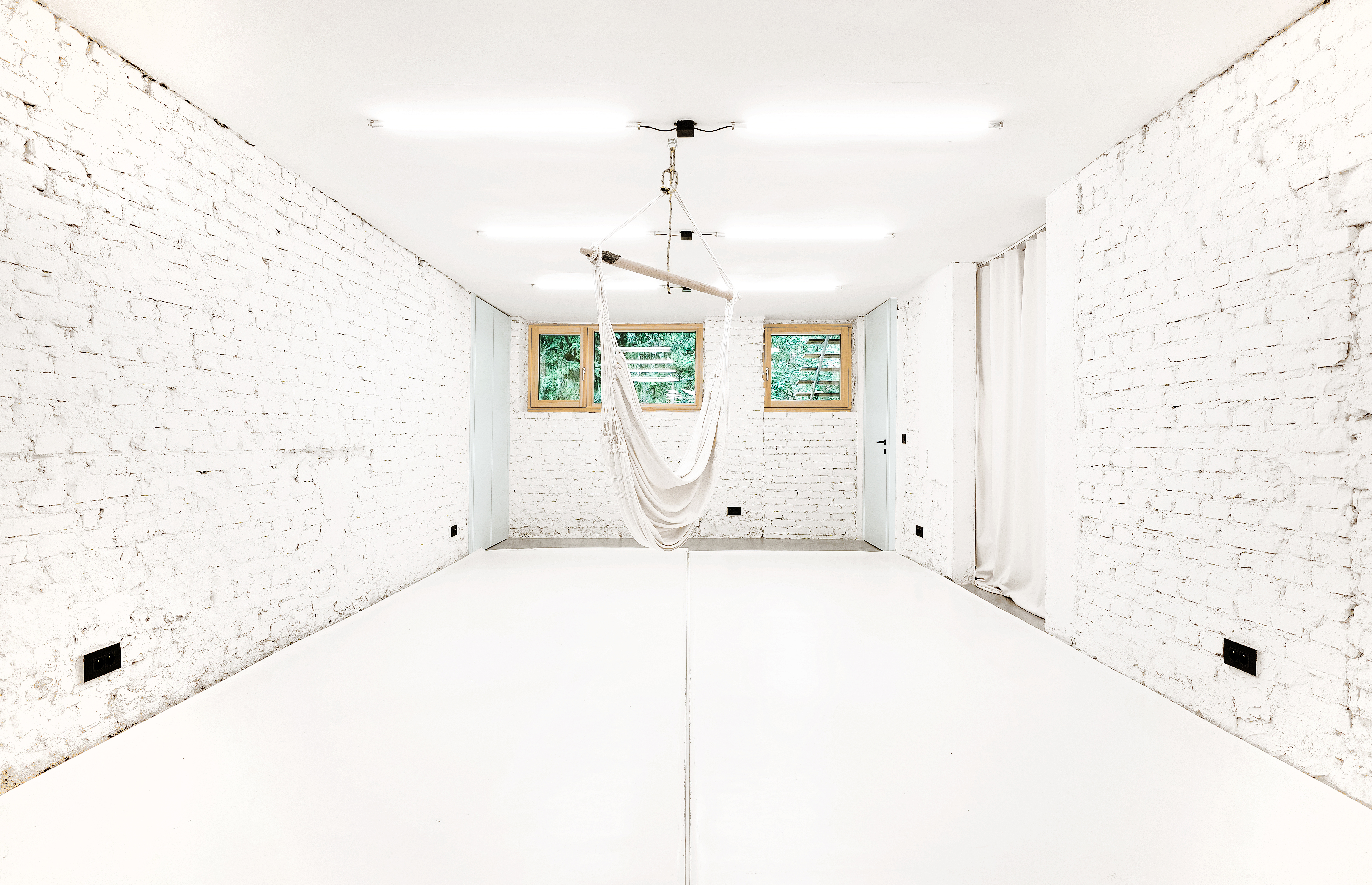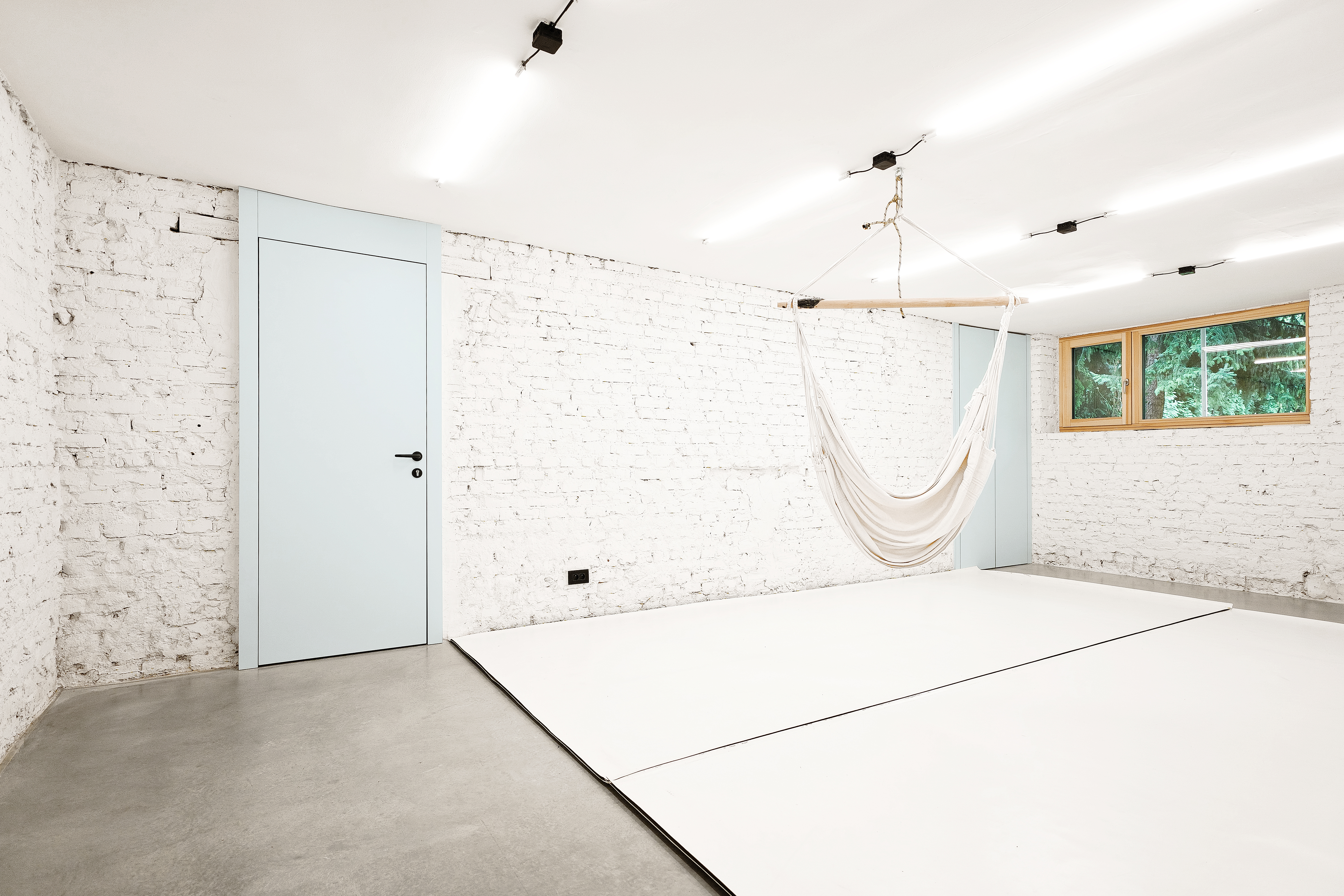 In the project of the reconstruction and rearrangement of the basement in a private single-family house, the key objective was to create a bright, welcoming, and functional space that would serve as a movement studio for parents and children. The interior was meant to become a free and safe environment while still preserving its character.